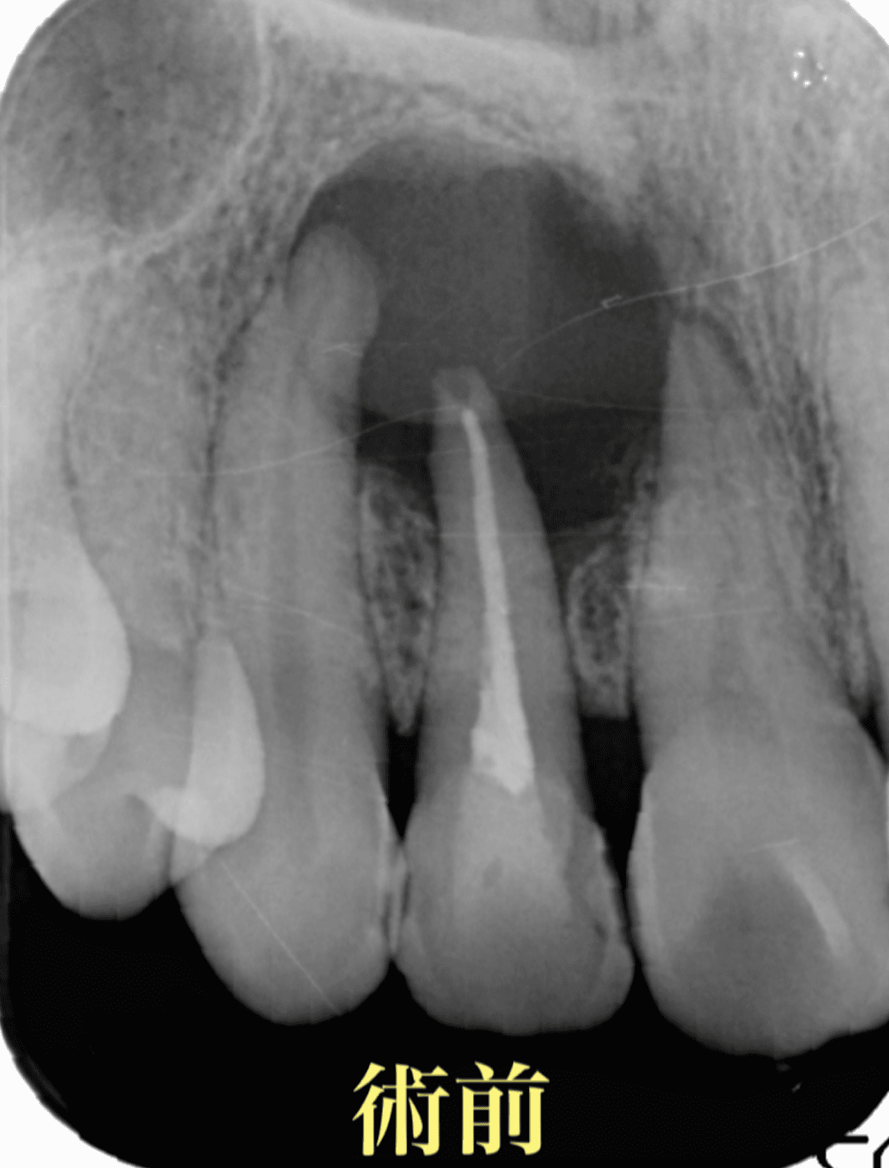 再根管治療後1年で病変の大きさに変化なく、ここで外科治療に踏み切りたくなりますが。。